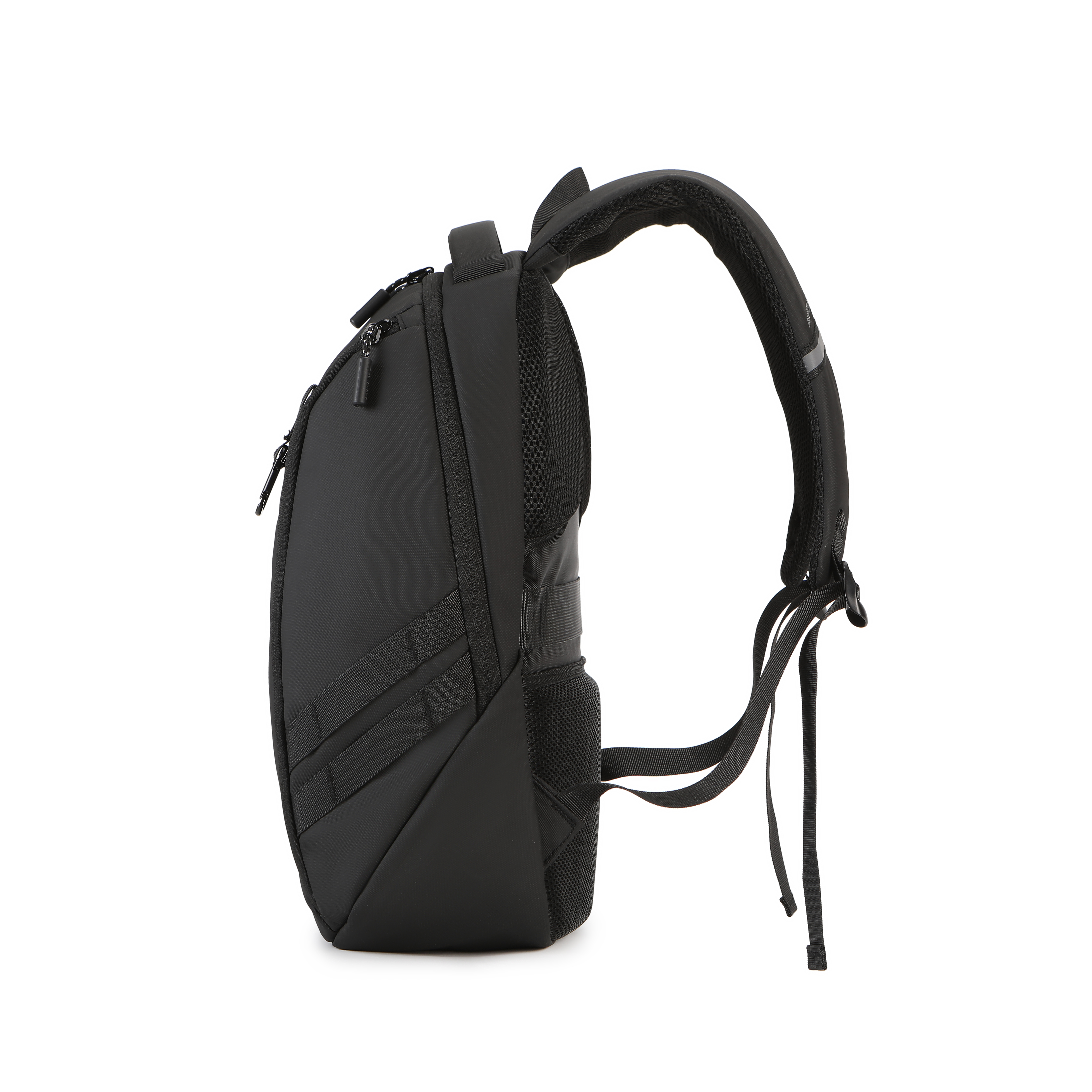 Mochila de design minimalista e shape arrojado, ideal para uso diário. Atende bem consumidores que preferem linhas simples, sem abrir mão da estética. Indica-se para executivos, viajantes ou estudantes. Possui: * *Um compartimento principal grande*, com bolso reforçado para notebook e bolso organizador extra para carregadores, carteira, documentos, passaporte, power banks e similares. * *Dois bolsos laterais iguais*, localizados nas paredes laterais da mochila, indicados para itens de fácil acesso como chaves, celular, óculos e fones. Outros detalhes: * Zíperes invertidos resistentes à água * Alças anatômicas que se moldam ao corpo, com detalhe em fita refletiva para melhor visibilidade noturna, ideal para bikers e hikers * Costado acolchoado em Drylex com 1cm de espessura, que facilita a circulação de ar e aumenta o conforto, principalmente quando a mochila está cheia * Cadarço traseiro para prender a mochila na alça de mala de viagem * Puxadores de metal cilíndricos que facilitam a abertura dos bolsos * Mosquetão frontal que funciona como porta-chaves preso à mochila * Passadores em nylon * Cadarços reforçados * Alças mosqueadas nas extremidades